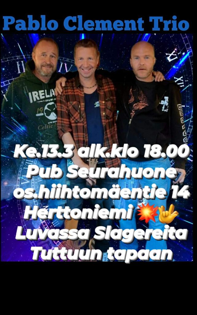 Syksy blosis blåsaa jo Kovaa,Anyway…PALLOGRILLI RAV. LAAJASALO CLEMENT TRIO TAAS LIVENÄ LA.30 11 KLO.19.00- Tervetuloa ja Ukko tekee Ensiesiintymisen Hyppypotkun lisäks, Gubbe laulaa Beatlesia livenä ja Släbä tuttuun tapaan kipparoi yhtyeen Aalloille. SAARIOSTOSKESKUS 2 KRS. BE THERE